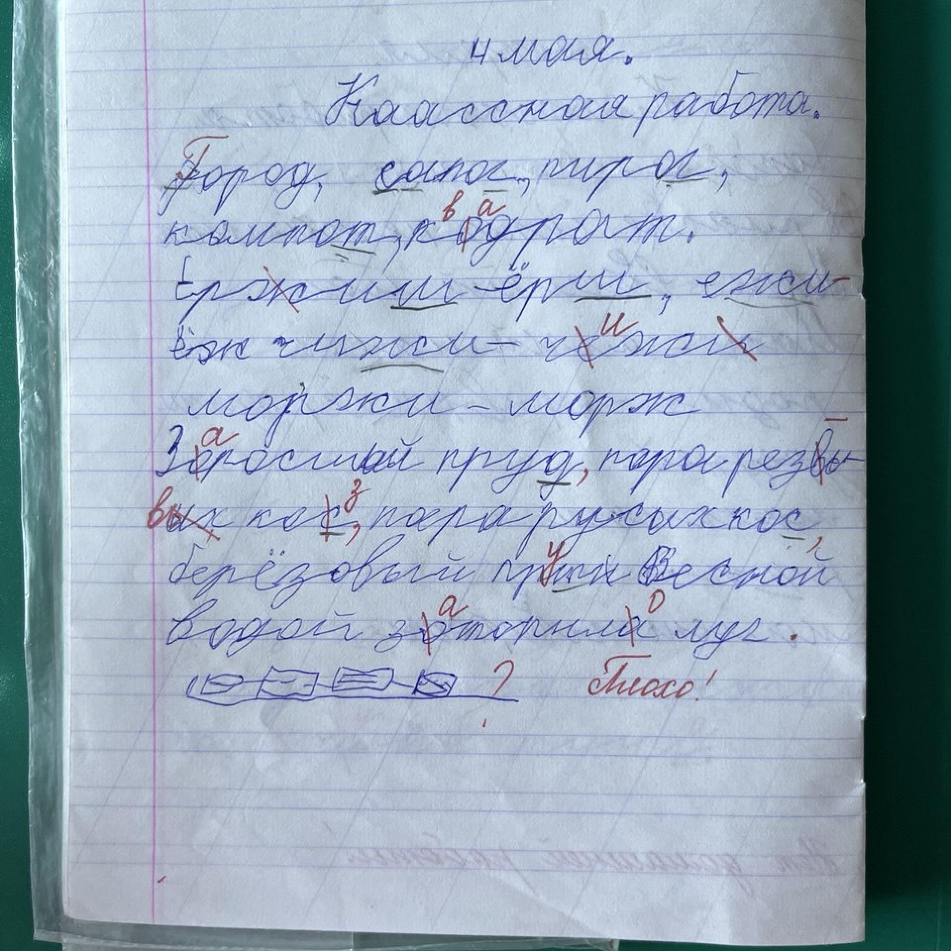 На консультации учитель-логопед, просматривая тетрадь ребёнка с письменными работами, определяет объём и уровень усвоения школьной программы будущего пациента и проводит анализ допущенных ошибок.
